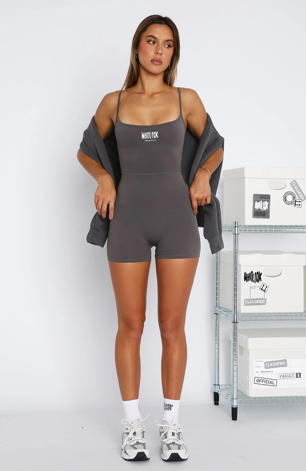 The Archive 6.0 Playsuit in Ash is our new obsession! Featuring thin straps, low neckline, puff print logo centre front, mini short length and stretch fabric. Complete the look with sneakers for the perfect off-duty look!