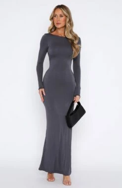 As You Are Long Sleeve Maxi Dress in Charcoal – Elegant & Comfortable Women’s Dress