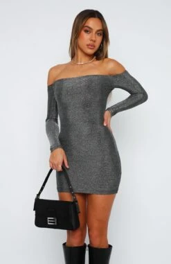 Won’t Get Over You Long Sleeve Mini Dress – Elegant Silver Party Dress