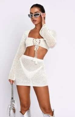 The Hold On Crochet Bikini Top in White is an essential to complete your festival look! Featuring halter style, adjustable straps and crochet fabric. Pair with the matching Give Me Something Crochet Mini Skirt or the See Me Now Crochet Midi Skirt and sunglasses for a look we love!