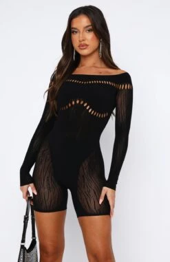 Under My Spell Long Sleeve Playsuit Black – Elegant Women’s Dress