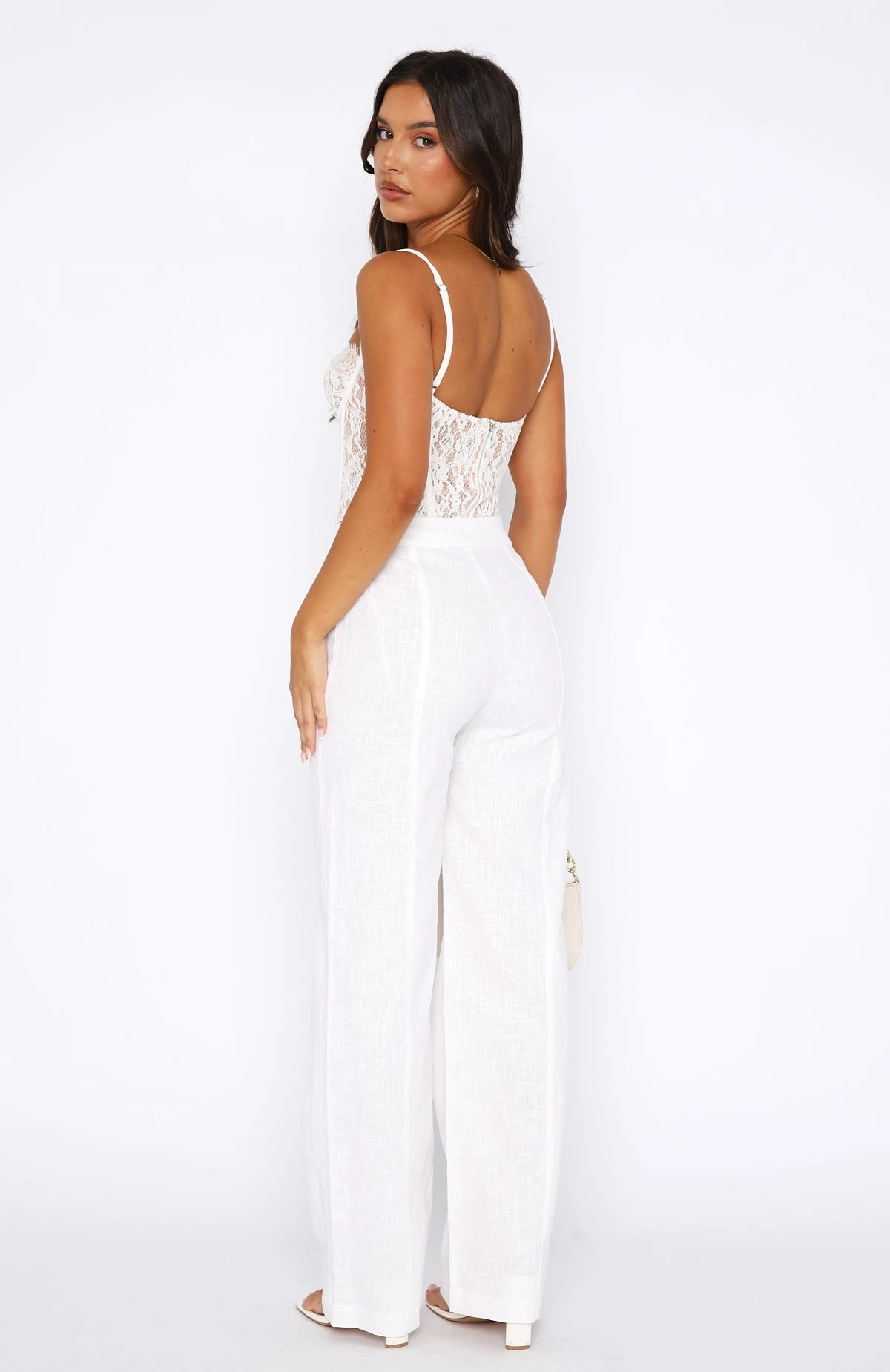 Bring summer wherever you go with The Things You Are Linen Pants in White. Features a button-up front design, front faux pocket design, wide leg fit, unlined and lightweight fabric. Pair with fitted tee and platform slide to elevate your personal style! So chic!