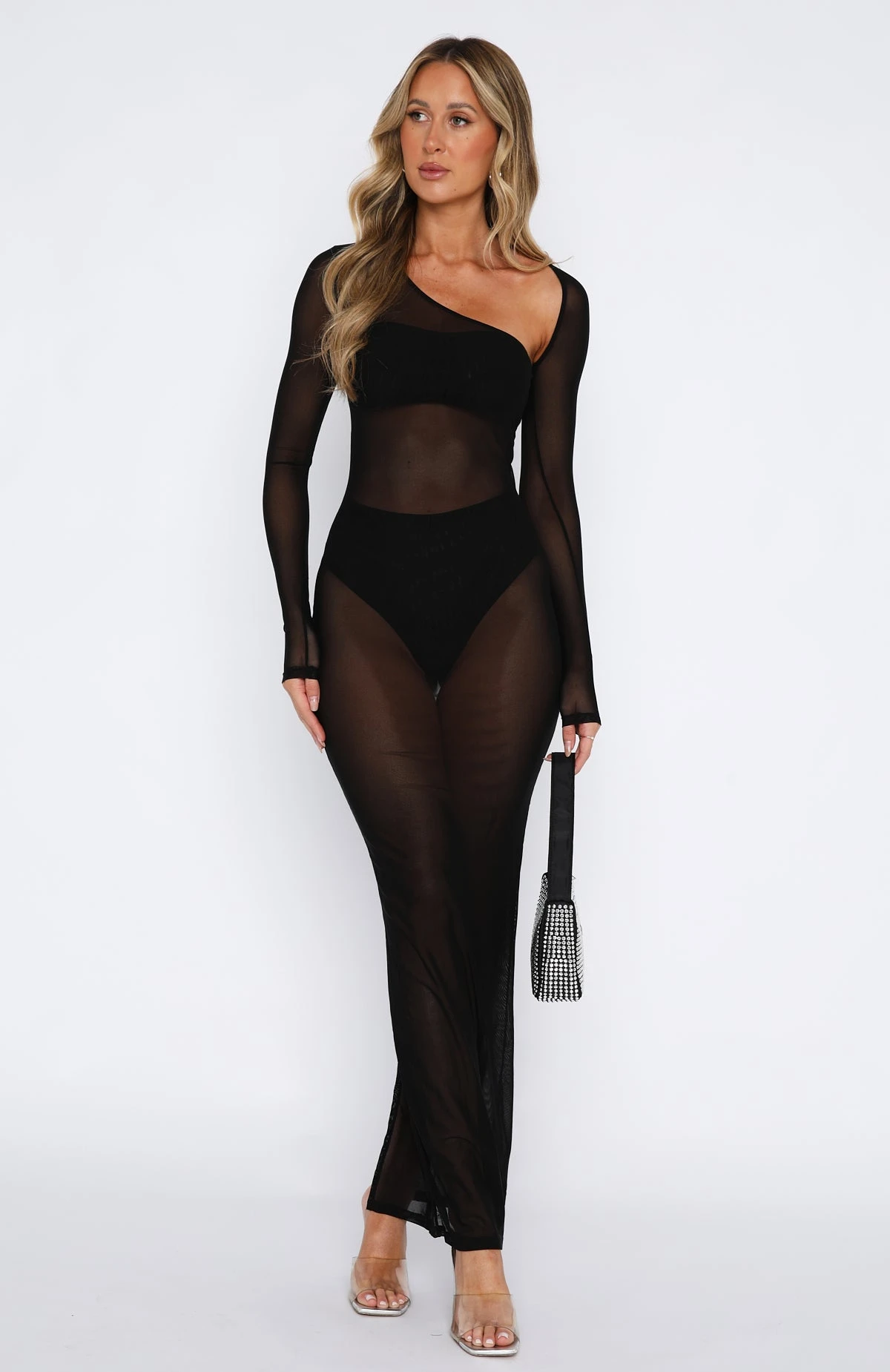 You will be the moment in the Wasted Times Long Sleeve Maxi Dress in Black. Featuring long sleeves, side leg split and stretch, mesh fabric. We love this paired with gold accessories and strappy heels for a look that will have you stealing all the stares!Â